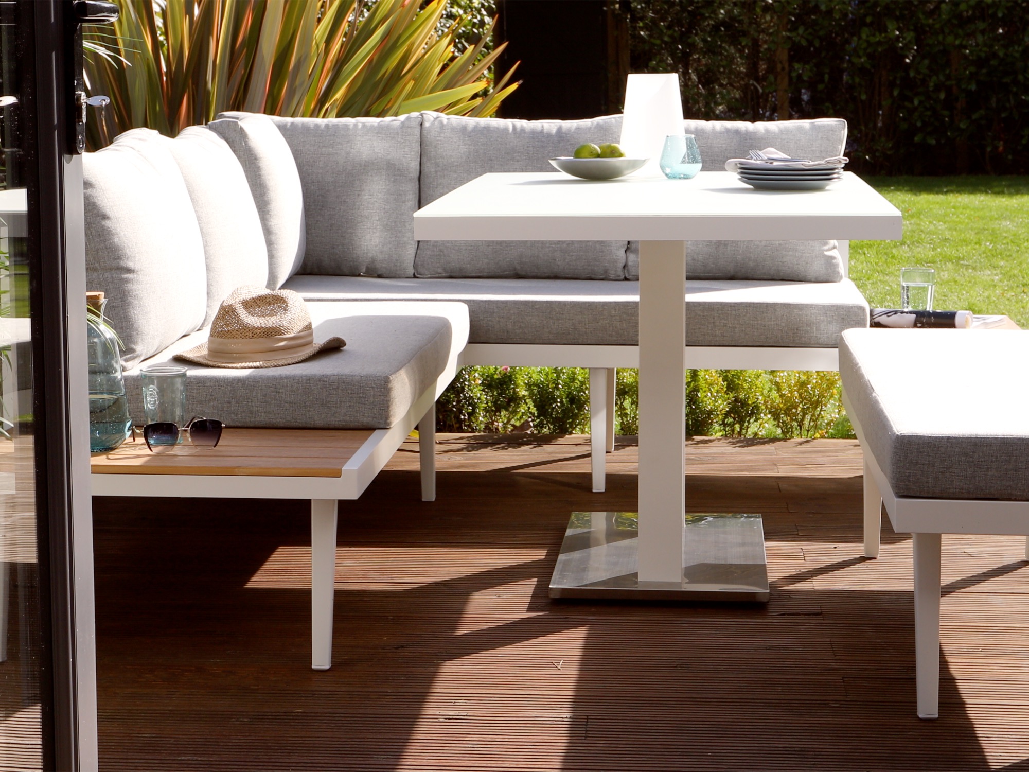 Palma 4 seater garden cube table and chairs set, £629, kettler. Spend over £1,000 on home, garden, furniture and lighting and spread the cost over 12 months, or over 24 months when you spend £3,000 or more. The garden table and chairs sets are a classical feature for your outdoor space, perfect for use when entertaining or simply enjoying the sunshine with friends. Chic bistro tables for your outdoor area, kids' tables that are ideal for picnics and playdates or enjoy our hardwood side table for keeping a book and a cool drink on a relaxing summer evening. Complementing your space, our range has just what you need!