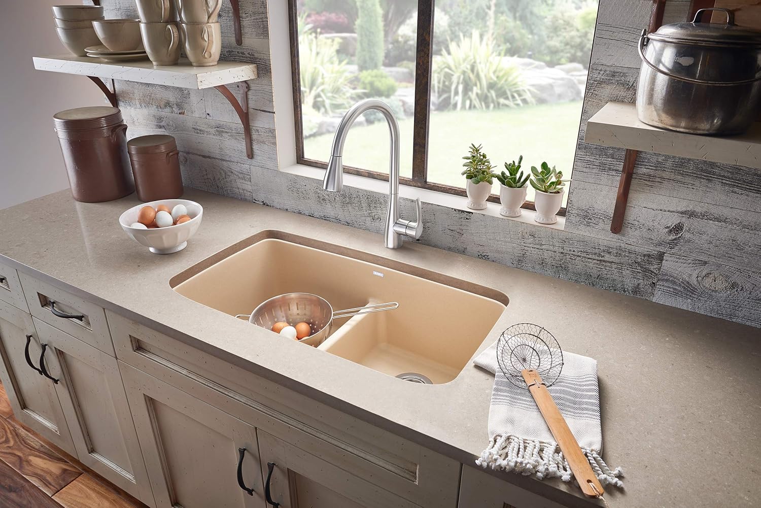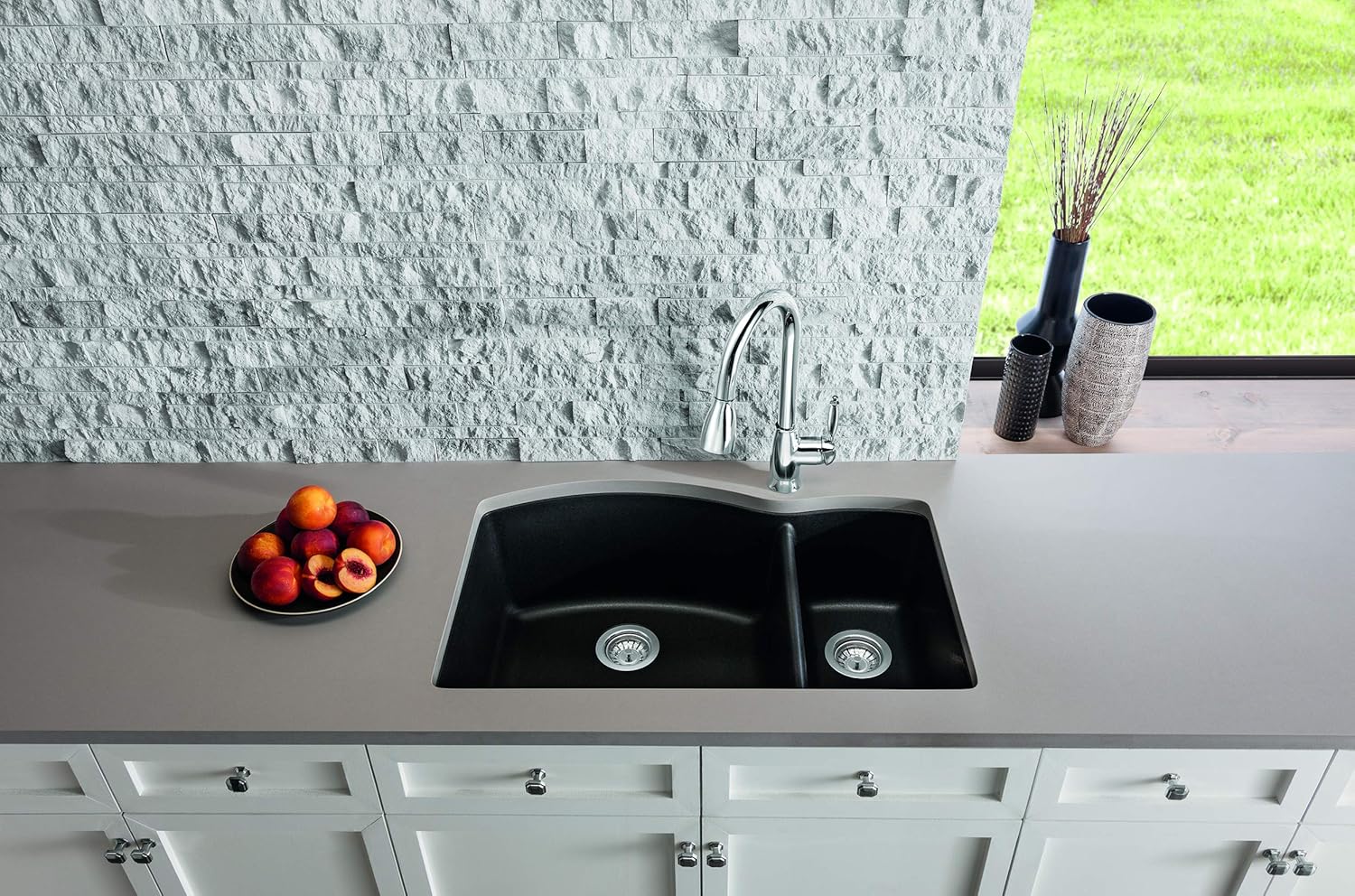 Precis undermount granite composite 33 in. With over 30 years of material development, silgranit has been engineered to take on the toughest kitchen tasks. And your sink should be no exception. 1 hole composite double bowl dual mount kitchen sink in anthracite $477.75 blanco america diamond™ 15 x 15 in. No hole composite double bowl undermount kitchen sink in truffle (441296) at ferguson.