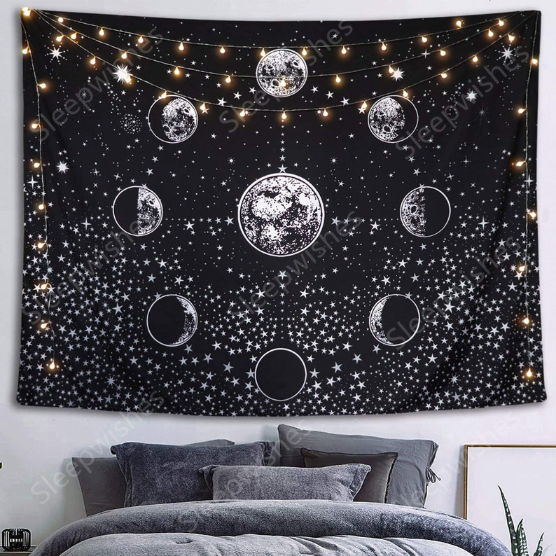 Shipping worlwide usa, uk, canada, australia and more countries Moon phase tapestry wall hanging black and white tapestry stars starry night sky universe tapestry sleepwishes 5 out of 5 stars (1,483) sale price $13.49 $ 13.49 $ 14.99 original price $14.99 (10% off) free shipping add to favorites more colors moon phase wall hanging/ moon phases decor/moon wall decor/ moon tapestry/ witchy room decor/ wall. Easy to hang, this wall decorative crescent moon is the unique headboard, wall tapestry, dream catcher, or boho wall pediment decor. Psychedelic moon starry tapestry flower wall hanging room sky carpet tapestries. Sugar skull and floral tapestry. Eight diagrams tapestry type 9: Beach 3d tapestry from $28.99. Psychedelic mandala moon sun tassel tapestry wall hanging mount tapestries decor. Full moon loom has the largest selection of indian tapestry and bedspreads in the usa. Favorite add to more colors tarot divination tapestry, tarot flag tapestry, the sun, the moon, the star, tarot card. The black and white moon truly catches an eye! Chakra wall tapestry from $29.99 $52.99. Polyester fabric tapestries type 3: