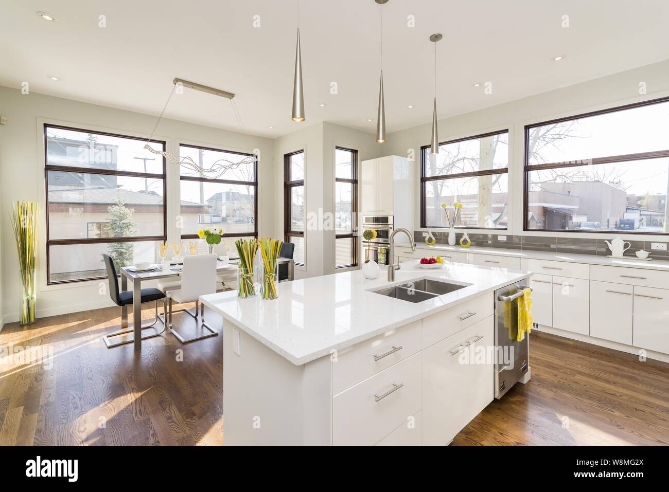 The white quartz countertop is a modern feature that feels retro thanks to its speckled pattern. Modern style kitchen is often marked with a simple design, while white is the perfect color to have that timeless look. While you may want to do a farmhouse design, it may be too rustic for your home's overall design and decor. A kitchen remodel that meets personal and professional needs. Lacquered plywood is an unusual material for kitchen cabinets.